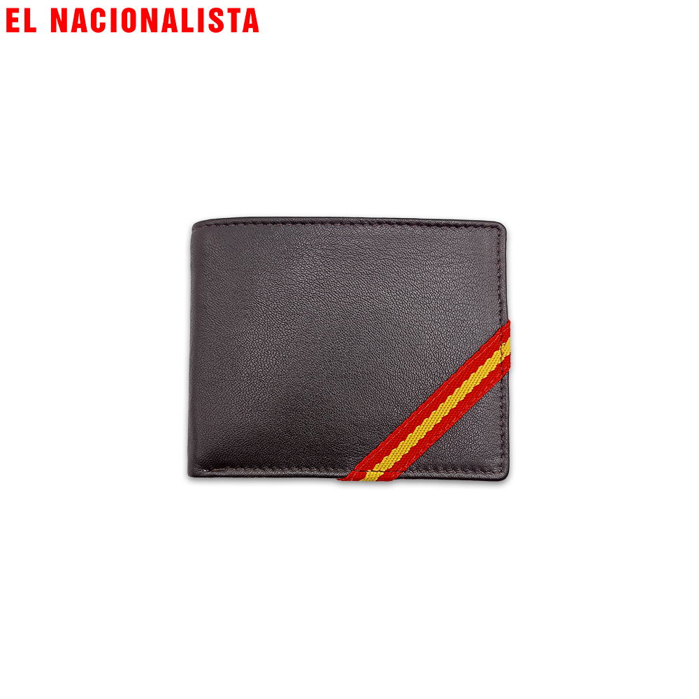 Carteras con motivos patrióticos como la bandera de España, escudos y detalles culturales.