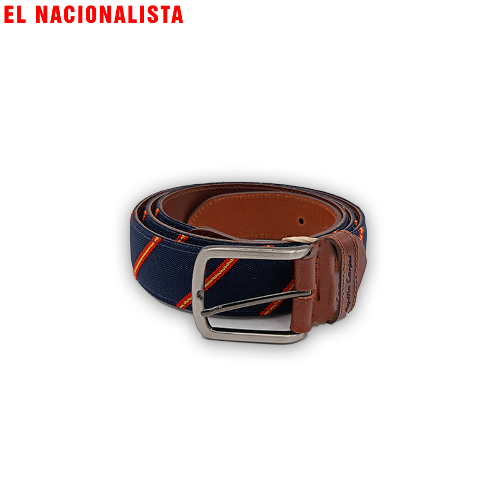 Cinturones con detalles bordados, impresos o grabados que representan la bandera de España y otros símbolos nacionales.