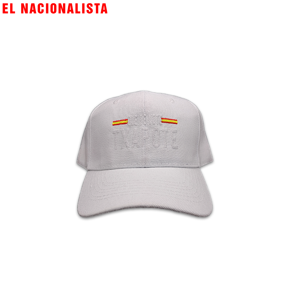 Gorras con la bandera de España en diferentes formatos, escudos nacionales, lemas históricos y elementos culturales.