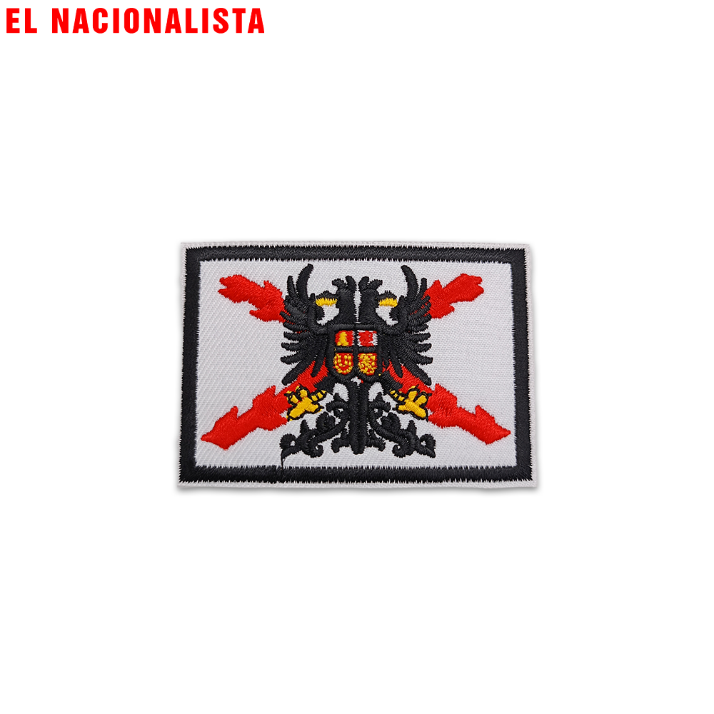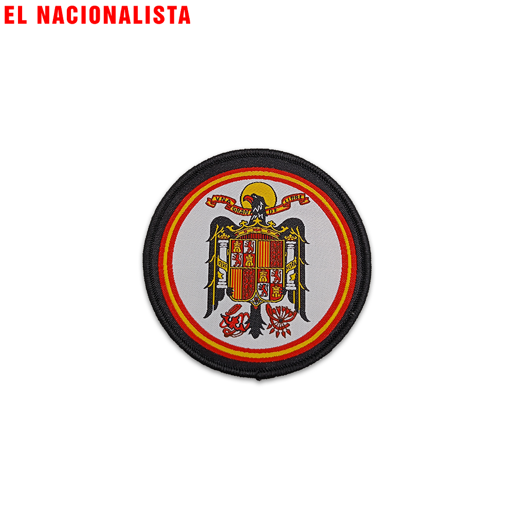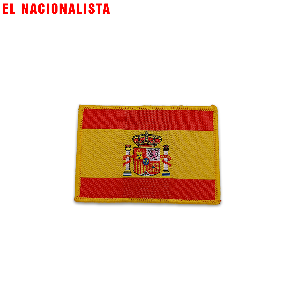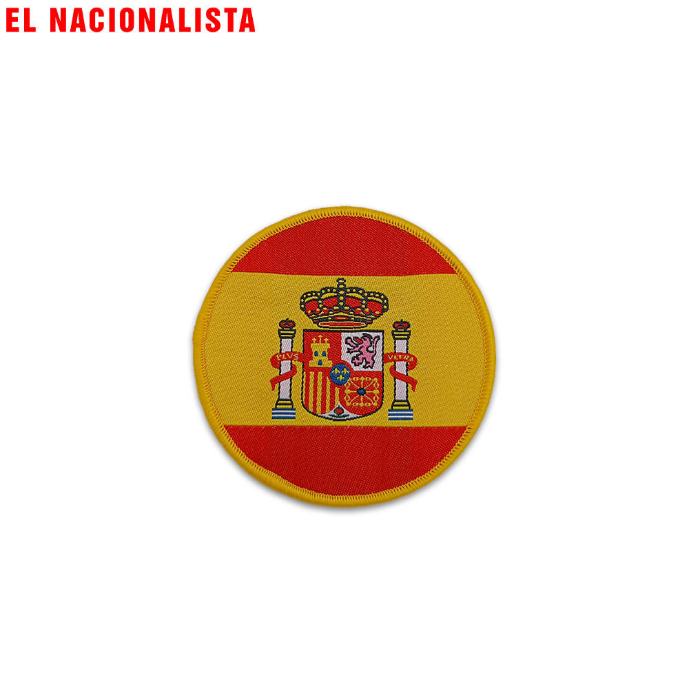 Incluye escudos históricos, banderas estilizadas y emblemas relacionados con la identidad española.