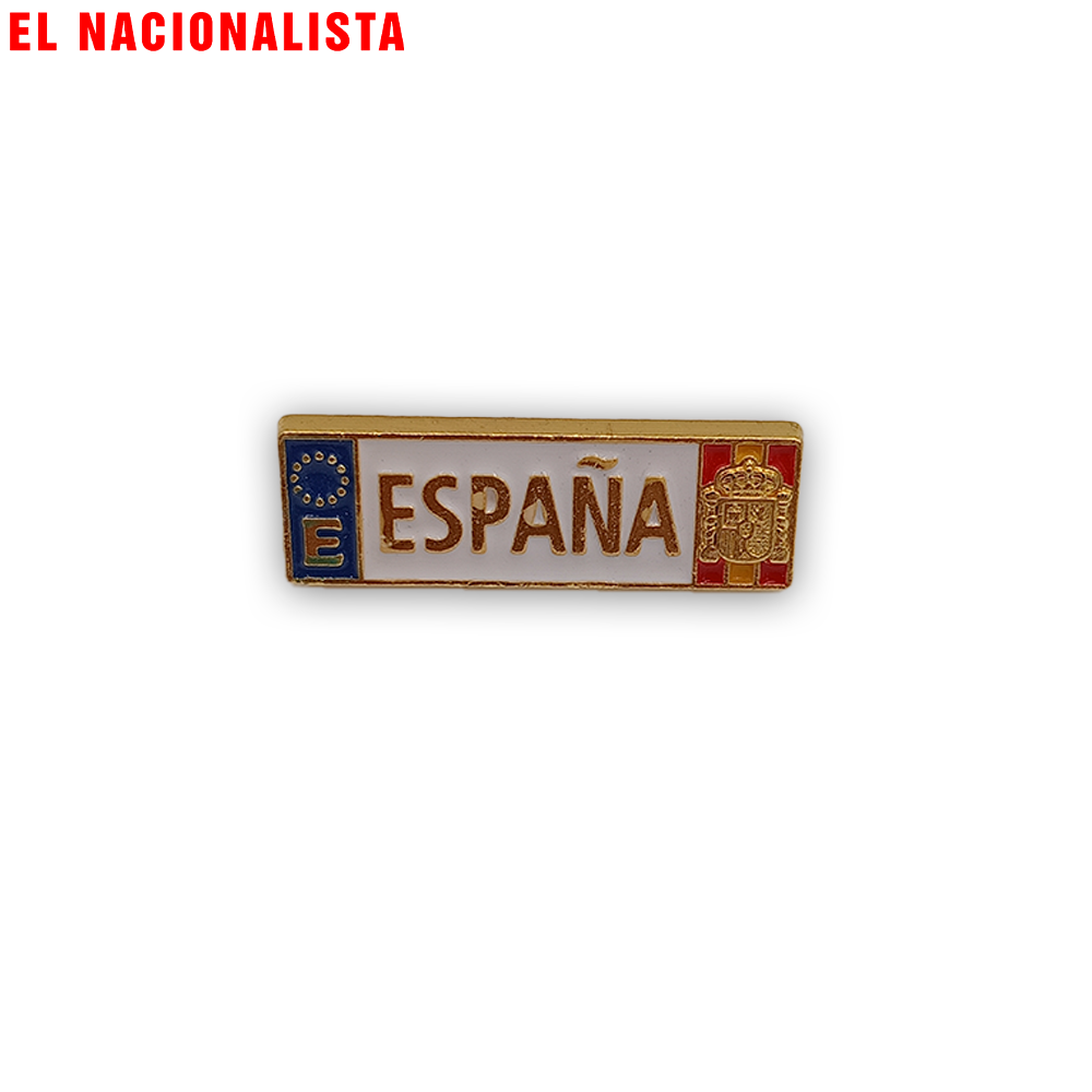 Pines con motivos de la bandera de España, escudos nacionales y otros símbolos patrios.