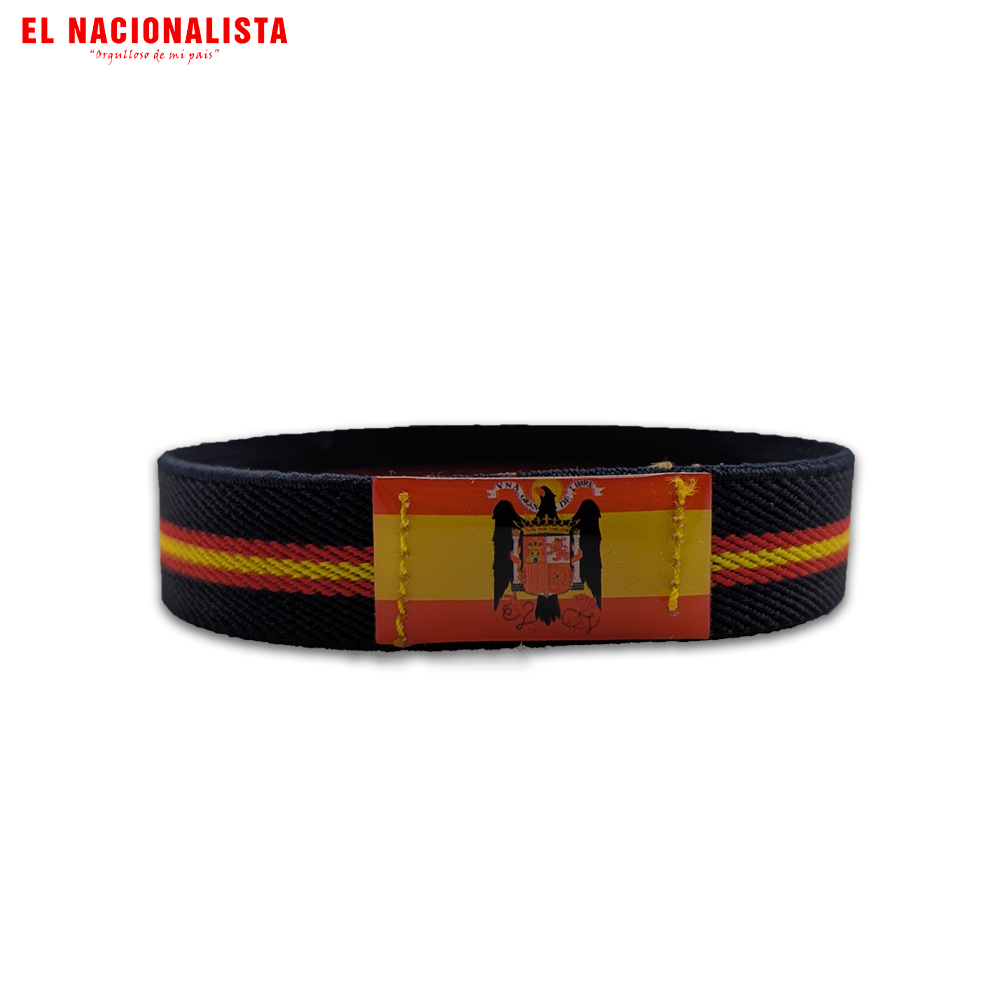 Lleva los colores de tu país siempre contigo con esta pulsera elástica de diseño atemporal. Sencilla, elegante y extremadamente cómoda, presenta la bandera de España tanto en la banda como en la pieza central reforzada. El accesorio perfecto para el día a día, eventos deportivos o como un detalle patriótico.