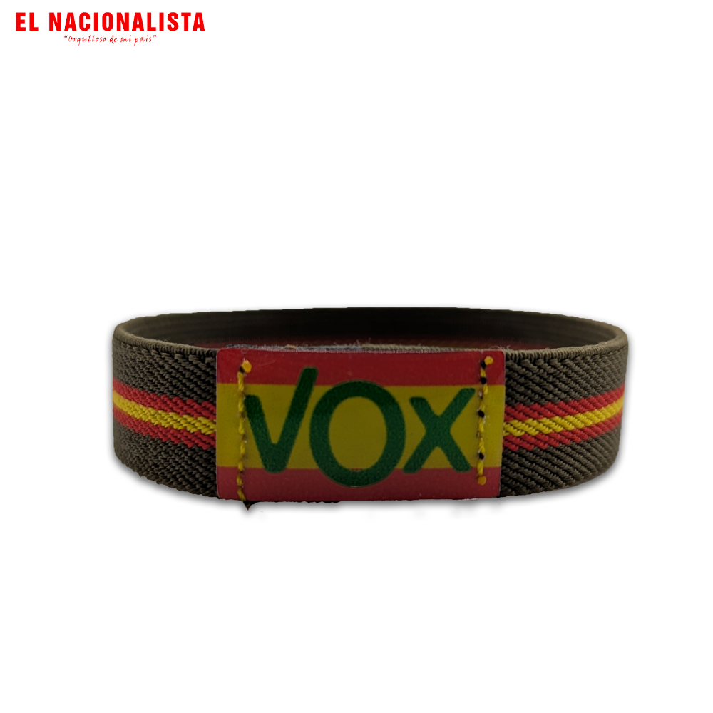 Muestra tu afinidad política con esta pulsera elástica de alta calidad. Combina la bandera nacional con una pieza central que integra el logo de VOX en verde sobre los colores de España. Un accesorio cómodo, resistente y diseñado para el día a día o eventos especiales.
